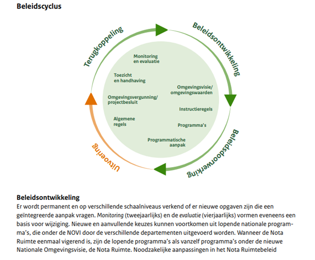 Het Voorontwerp Nota Ruimte is een feit. Nu er wordt gewerkt aan een ‘doorontwikkeling’ naar de Nota Ruimte kan het interessant zijn om de hieraan gekoppelde beleidscyclus tegen het licht te houden. Met de ervaring die is opgedaan sinds het ontwikkelen van de Nationale Omgevingsvisie is het denkbaar – danwel gewenst – dat de beleidscyclus meer rekening houdt met de snel veranderende tijdsgeest, met haar maatschappelijke beslommeringen en politieke mores. Neem ons huidige tijdvak, waarin burgers steeds luider hier & nu-acties en -oplossingen vragen van de politici en bestuurders. Er is nú een woningcrisis, dat moeten we nú oplossen.